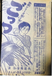 翌週の金曜日、行きつけの「市村書店」でキングを買いました。家に帰って開いてみると「ここ一番!」は影も形もありません。目次の上の読者の意見に編集部が答える「私書箱0号」という欄で中学3年の読者の投書に答える形で「ここ一番!」は新岡いさお先生のご都合で、急きょ終わりになりました」と書いてあり、体の力が抜けるような気分になりました。気を取り直して、巻頭カラーの「アルプスくん」(水島新司)から読んでいくと後ろのページの次号予告に見開き2ページで新しい相撲マンガ「ごっつあん」原作・吉岡道夫、まんが・田丸ようすけ の告知が載っていました。その横に「おことわり」があり、新岡いさお先生が病気で、事実上「ここ一番!」の終了が大書されていました。病気が治ったら再開する、とは書かれておらず、休載といえど実際は打ち切りだったのです。以降、82年に少年キングが休刊になるまで、新岡いさお氏は一度も登場しませんでした。他の少年誌にも描いてないようでした。